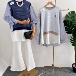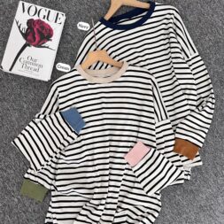 Pakaian Atasan Wanita Blouse Oversize Knit Stripe
