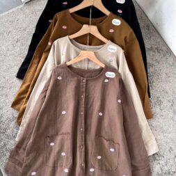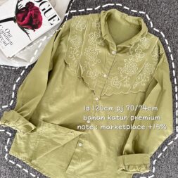 Kemeja Wanita Oversize Korean Style Bahan Linen Bordir Chein Terbaru