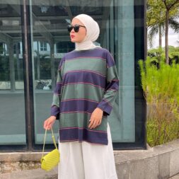 Blouse Wanita Stripe Youra Bahan Babyterry Kombi Rayon Terkini
