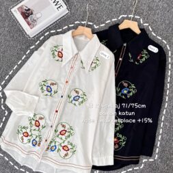 Kemeja Wanita Korean Style Katun dengan Motif Colorful Kekinian