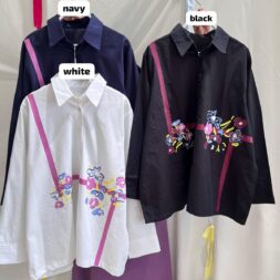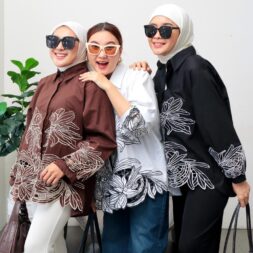 Atasan Kemeja Wanita Levira Moon dengan Bahan Katun Bordir untuk Gaya Modern Kekinian