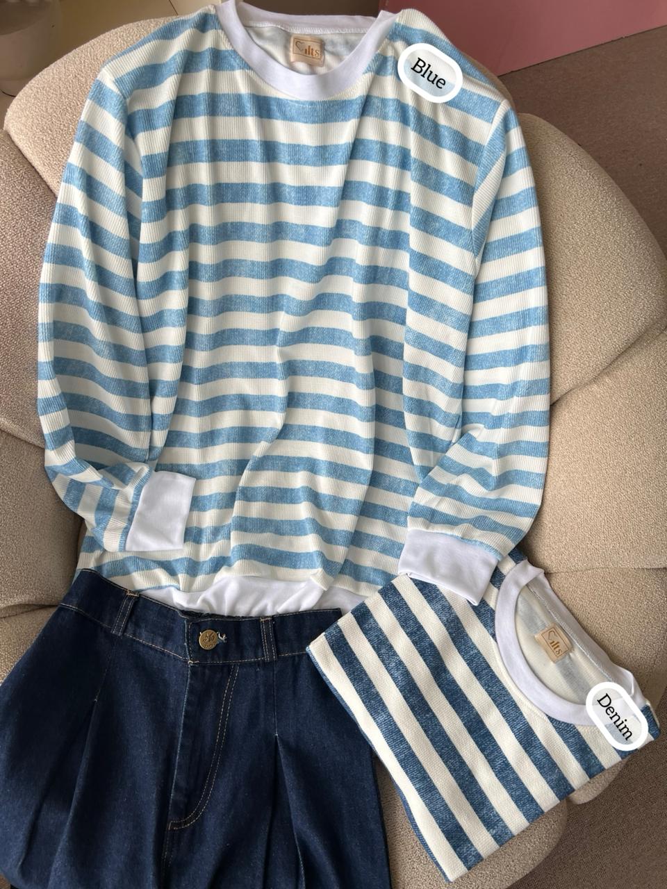 Blouse Stripe Motif Rugby Wanita untuk Gaya Casual Santai