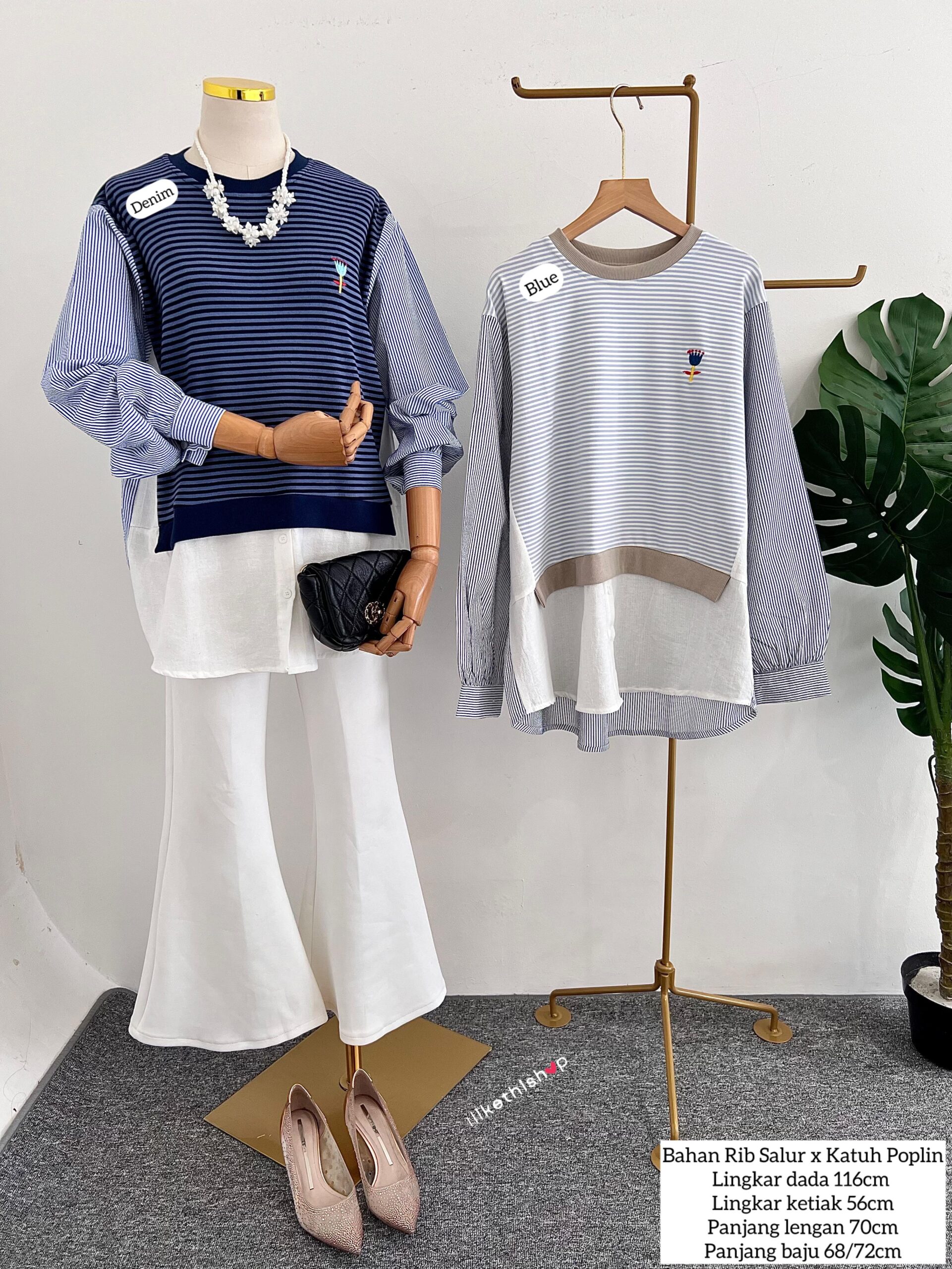 ● Bahan : Rib Salur x Katun Poplin